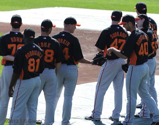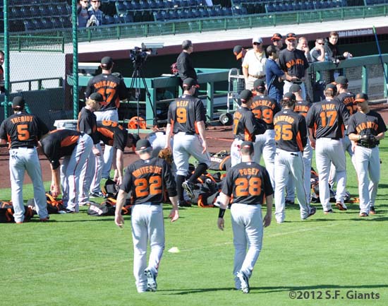As we get closer to that 1st game on Saturday, March 3rd at Scottsdale Stadium, you can feel the excitement all the way from SF. Baseball is almost here. Today is Day 16 of Camp here in Scottsdale, and the Giants Players are chomping at the bit to get going. Tomorrow will be a big day. Players will be arriving bright and early (7am) to take part in the annual PHOTO DAY, where several baseball card, AP photo, scoreboard and CSN Bay Area cameras will capture the players for the 2012 season. We will be covering that with some cool photos behind the scenes. Then a little bit later, the Giants will be hosting an intrasquad game. Giants vs Giants. We will be streaming the game live on SFGIANTS.COM beginning at 9am PST along with commentary from Marty Lurie and special Guests Brian Murphy and Paulie Mac from the KNBR Morning Show. You can join in the conversation via Twitter #SFGLive – After tomorrow, we will be one step closer to Opening Day. See you in the AM!